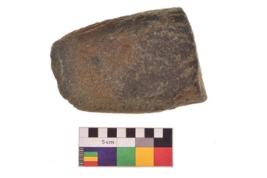 | Description / विवरण | Specimen of an uneven shaped grinding stone. It is brownish in colour and smooth in texture. It has flat base. |