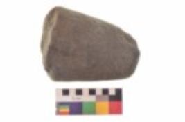 | Description / विवरण | Specimen of a roughly oval shaped saddle quern. It is brownish in colour and smooth in texture. It is roughly round in cross section. |