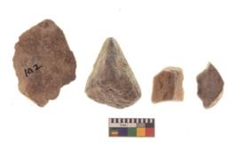| Description / विवरण | There are n 4 of utilized worked cores and show irregular scar pattern. One has abroken tip whillw two are tapering at one end. |