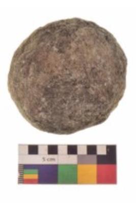 | Description / विवरण | Specimen of a roughly round shaped hammerstone with smooth texture. It is brownish in colour and round in cross section. |