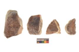 | Description / विवरण | There are n 4 of utilized worked cores and show irregular scar pattern on both dorsal and ventral side.one has a broken tip. |