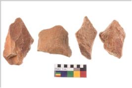 | Description / विवरण | There are n 4 utilized flake cores. There are multidirectional irregular scar pattern on both dorsal and ventral face of the flake cores. One has sharp edges and three have blunted edges. |