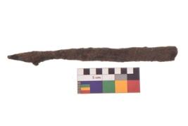 | Description / विवरण | Specimen of a long nail with sharp pointed functional bottom end and round slightly projected top. |