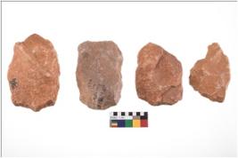 | Description / विवरण | Specimen of flake tools with prominent flaking marks. They are made up of a short flakes with sides trimmed. |