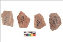 | Description / विवरण | Specimen of flake tools with prominent flaking marks. They are made up of a short flakes with sides trimmed. |