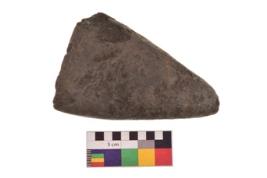 | Description / विवरण | Specimen of an handaxe with one elongated side for holding purpose. It is blackish in colour and smooth in texture. |