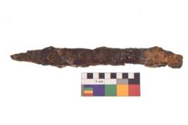 | Description / विवरण | Specimen of a long nail with sharp pointed functional bottom end and round slightly projected top. |