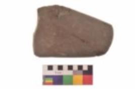 | Description / विवरण | Specimen of a roughly oval shaped saddle quern. It is brownish in colour and smooth in texture. It is roughly round in cross section. |