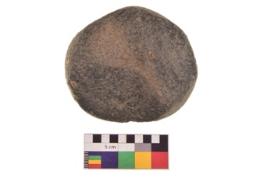 | Description / विवरण | Specimen of an uneven shaped hammerstone with smooth texture. It is blackish in colour and has flat base. |