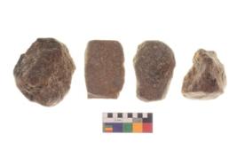 | Description / विवरण | There are n 4 of utilized worked cores and show irregular scar pattern. Three have a flat base. |