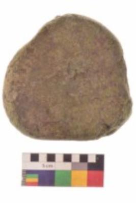 | Description / विवरण | Specimen of an uneven shaped grinding stone. It is brownish in colour and smooth in texture. It has flat base. |
