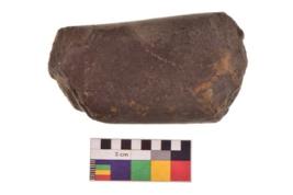 | Description / विवरण | Specimen of an uneven shaped saddle quern. It is brownish in colour and smooth in texture. It is round in cross section. |