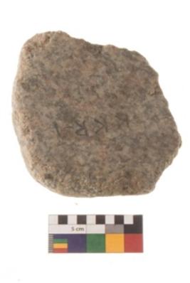 | Description / विवरण | Specimen of an oval shaped rubber stone with rectangular section and concave end. It is having flat base. |