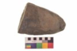 | Description / विवरण | Specimen of an uneven shaped grinding stone. It is brownish in colour and smooth in texture. It has flat base. |