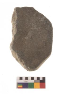 | Description / विवरण | Specimen of a large rectangular shaped sharpener, with a flat upper side. Only one side is heavily used. |
