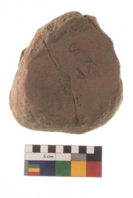 | Description / विवरण | Specimen of a large oval shaped sharpener, with a flat upper side. Only one side is heavily used. |