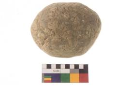 | Description / विवरण | Specimen of a spherical shaped hammer stone with battered surface. |