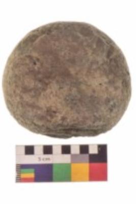 | Description / विवरण | Specimen of a roughly round shaped hammerstone with smooth texture. It is brownish in colour and round in cross section. |