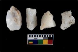 | Description / विवरण | There are n 4 utilized flake cores. Three are tapering at one end and one has blunted edges. |
