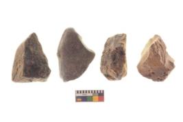 | Description / विवरण | There are n 4 of utilized worked cores and show irregular scar pattern on both dorsal and ventral side. Three are tapering at one end. |