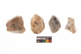 | Description / विवरण | There are n 4 of utilized worked cores and show irregular scar pattern on both dorsal and ventral side. They have blunt edges. |