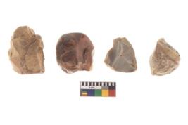 | Description / विवरण | There are n 4 of utilized worked cores and show irregular scar pattern on both dorsal and ventral side. One has a flat base. |