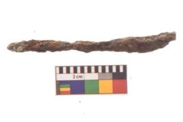 | Description / विवरण | Specimen of a long nail with sharp pointed functional bottom end and round slightly projected top. |