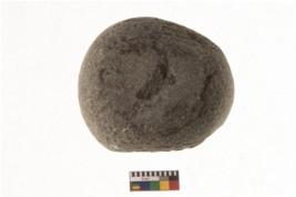 | Description / विवरण | Specimen of a Hammer stone roughly rounded in shape with grounded edges and flattish base. |