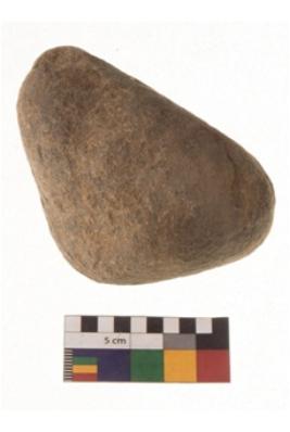 | Description / विवरण | Specimen of a roughly rounded cylindrical shaped pounder stone with battered surfaced and truncated end to hold the object. |