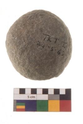 | Description / विवरण | Specimen of a Hammer stone roughly rounded in shape with grounded edges. |