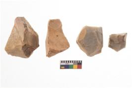 | Description / विवरण | There are n 4 of utilized worked cores and show irregular scar pattern on both dorsal and ventral side. Two have a broken tip. |