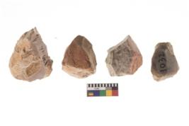 | Description / विवरण | There are n 4 of utilized worked cores and show irregular scar pattern on both dorsal and ventral side. Three are tapering at one end. |