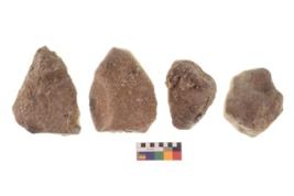 | Description / विवरण | There are n 4 of utilized worked cores and show irregular scar pattern. Two are tapering at one end and have a flat base. |