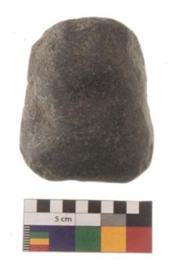 | Description / विवरण | Specimen of a roughly rounded cylindrical shaped pounder stone with battered surfaced and truncated end to hold the object. |