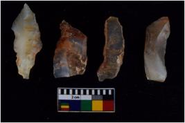 | Description / विवरण | Specimen of flakes tool with prominent flaking marks. It made up of a short flakes with sides trimmed. It is rectangular in shaped. |