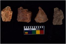 | Description / विवरण | Specimen of flakes tool with prominent flaking marks. It made up of a short flakes with sides trimmed. It is rectangular in shaped. |