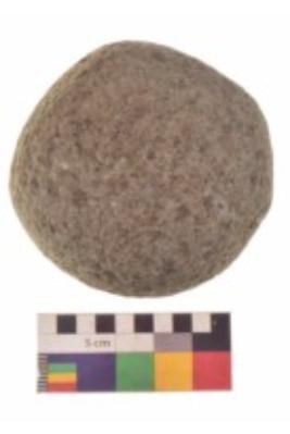 | Description / विवरण | Specimen of an uneven shaped grinding stone. It is brownish in colour and smooth in texture. It has flat base. |