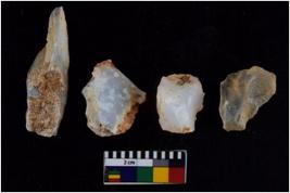 | Description / विवरण | There are n 4 flakes tool; there are large flakes with sides trimmed, Marks of secondary flaking are present on the both the faces. The dorsal is relatively flat. |