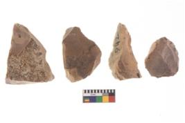 | Description / विवरण | There are n 4 of utilized worked cores and show irregular scar pattern on both dorsal and ventral side. Three are tapering at one end. |