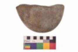 | Description / विवरण | Specimen of an uneven shaped grinding stone. It is brownish in colour and smooth in texture. It has flat base. |