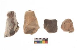 | Description / विवरण | There are n 4 of utilized worked cores and show irregular scar pattern on both dorsal and ventral side. Three have a broken tip. |