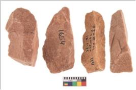 | Description / विवरण | There are n-4 of utilized flake cores. There are multidirectional irregular dominant scar pattern on both dorsal and ventral face of the cores. |