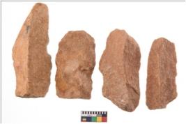| Description / विवरण | There are n 4 cores. There are multi directional irregular scar pattern on both dorsal and ventral face of the cores. Some have blunted edges and some have round edges. |