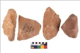 | Description / विवरण | There are n 4 cores. There are multi directional irregular scar pattern on both dorsal and ventral face of the cores. Some have blunted edges and some have round edges. |