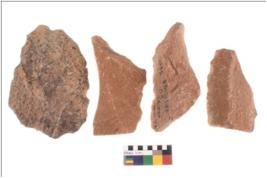 | Description / विवरण | There are n 4 cores. There are multi directional irregular scar pattern on both dorsal and ventral face of the cores. Some have blunted edges and some have round edges. |