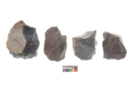| Description / विवरण | There are n 4 utilized flake cores. There are multi directional irregular scar pattern on both dorsal and ventral face of the flake cores. They have flat base and blunted edges. |