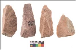 | Description / विवरण | There are n-4 of utilized flake cores. There are multidirectional irregular dominant scar pattern on both dorsal and ventral face of the cores. |