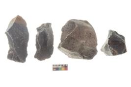 | Description / विवरण | There are n 4 utilized flake cores. There are multi directional irregular scar pattern on both dorsal and ventral face of the flake cores. They have flat base and blunted edges. |