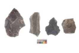 | Description / विवरण | There are n 4 utilized flake cores. There are multi directional irregular scar pattern on both dorsal and ventral face of the flake cores. Two have sharp edges and two have blunted edges. |
