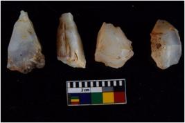| Description / विवरण | There are n 4 flakes tool; there are flakes tool with prominent flaking marks. It made up of a large flakes with sides trimmed. It is rectangular in shaped. |